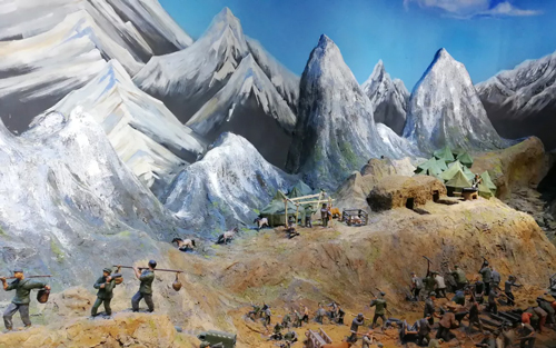 微缩场景通过复原与声光电结合,再现了兰新铁路工程乌鞘岭战役艰难险阻的场面,令参观者肃然起敬。