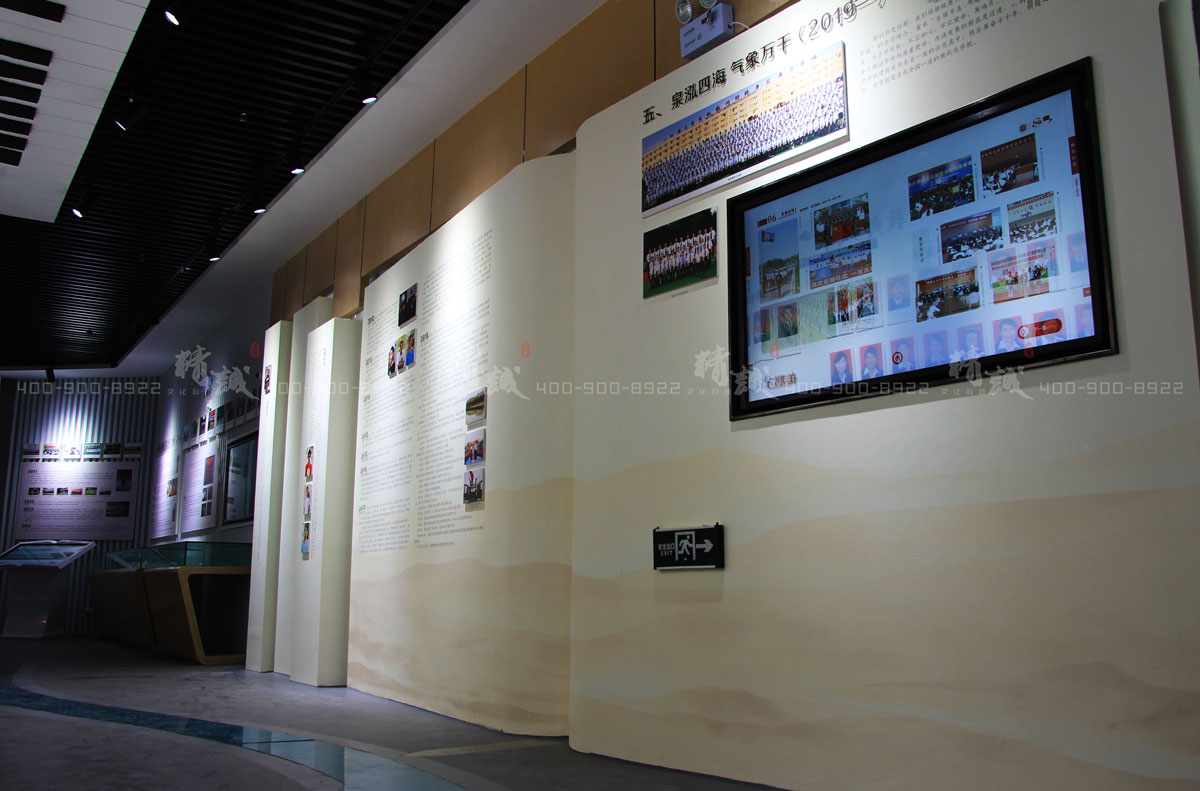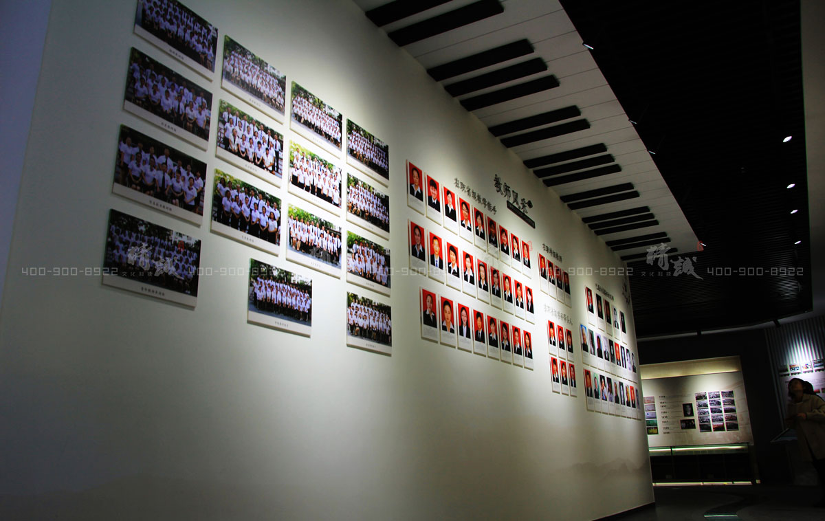 展馆的设计采用素雅的色彩和简约的线条,通过传统与现代相结合的模式,充分利用空间造型艺术、多媒体技术等手段,以及运用校史馆元素,体现独具特色的校史文化。