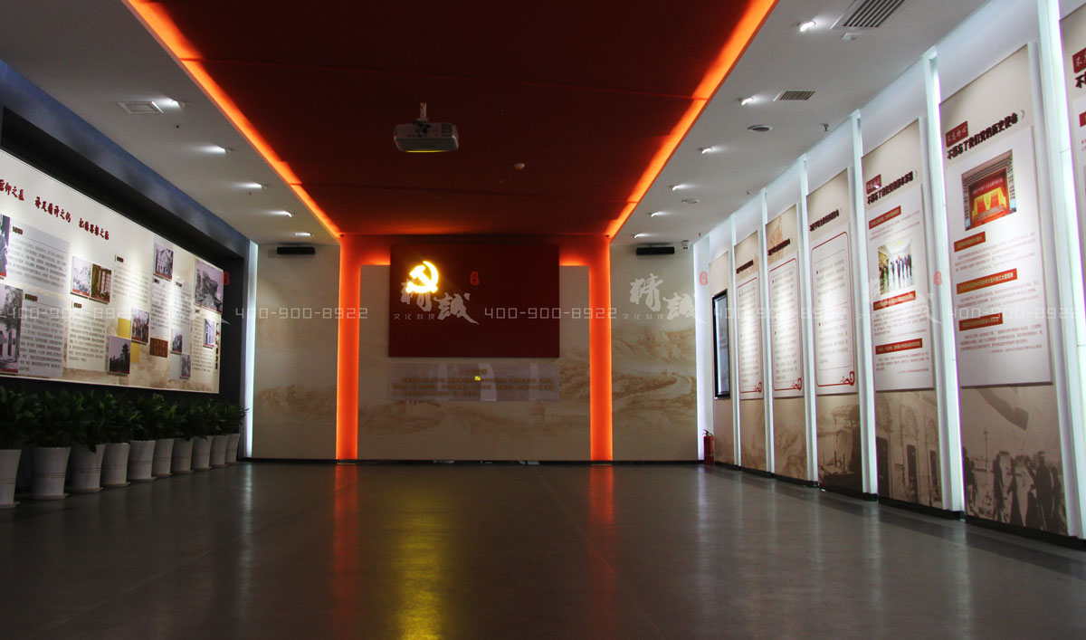 墙面展板以时间线为延伸,通过图文展示中国共产党精神谱系和光辉历程、西安党组织发展史、莲湖红色革命遗址等内容。再现我党波澜壮阔的发展史,以及西安作为西北革命根据地的前沿阵地,在近代革命中擎起的千里之任。