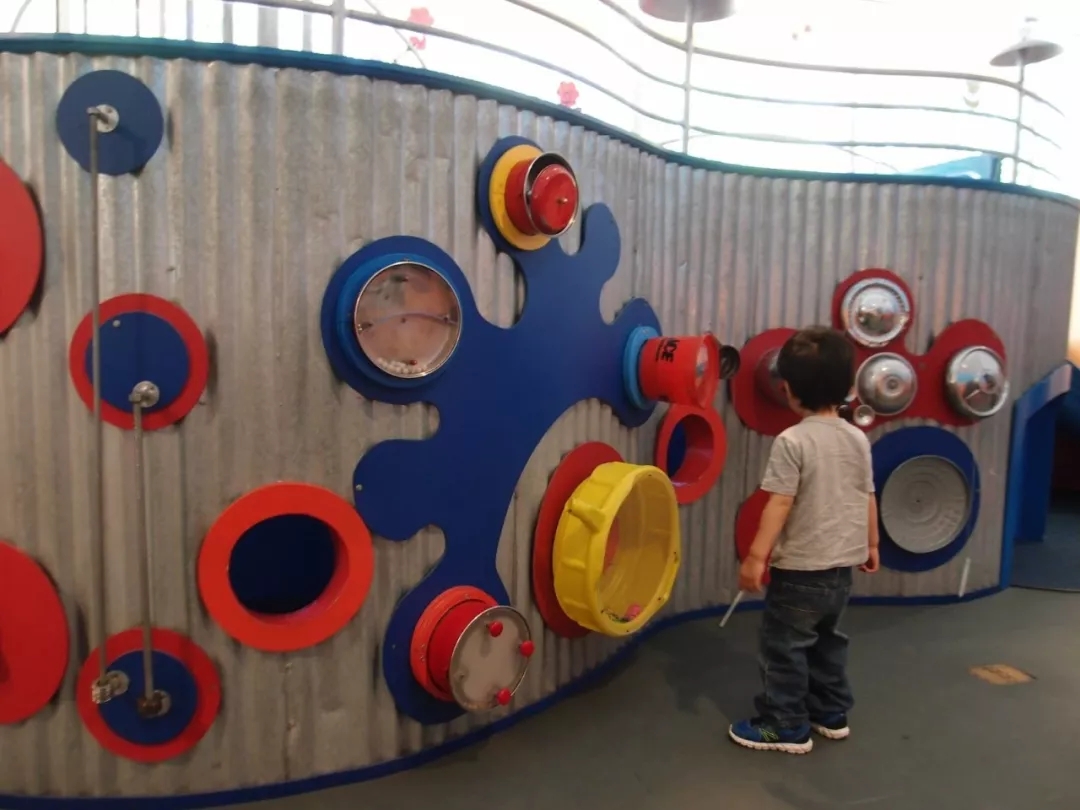 康涅狄格州儿童博物馆是多元智能理论的实验基地,尊重儿童文化,并鼓励动手和互动。进入场馆正门,就能看到一系列展示声学、空气和运动等主题的互动展项。
