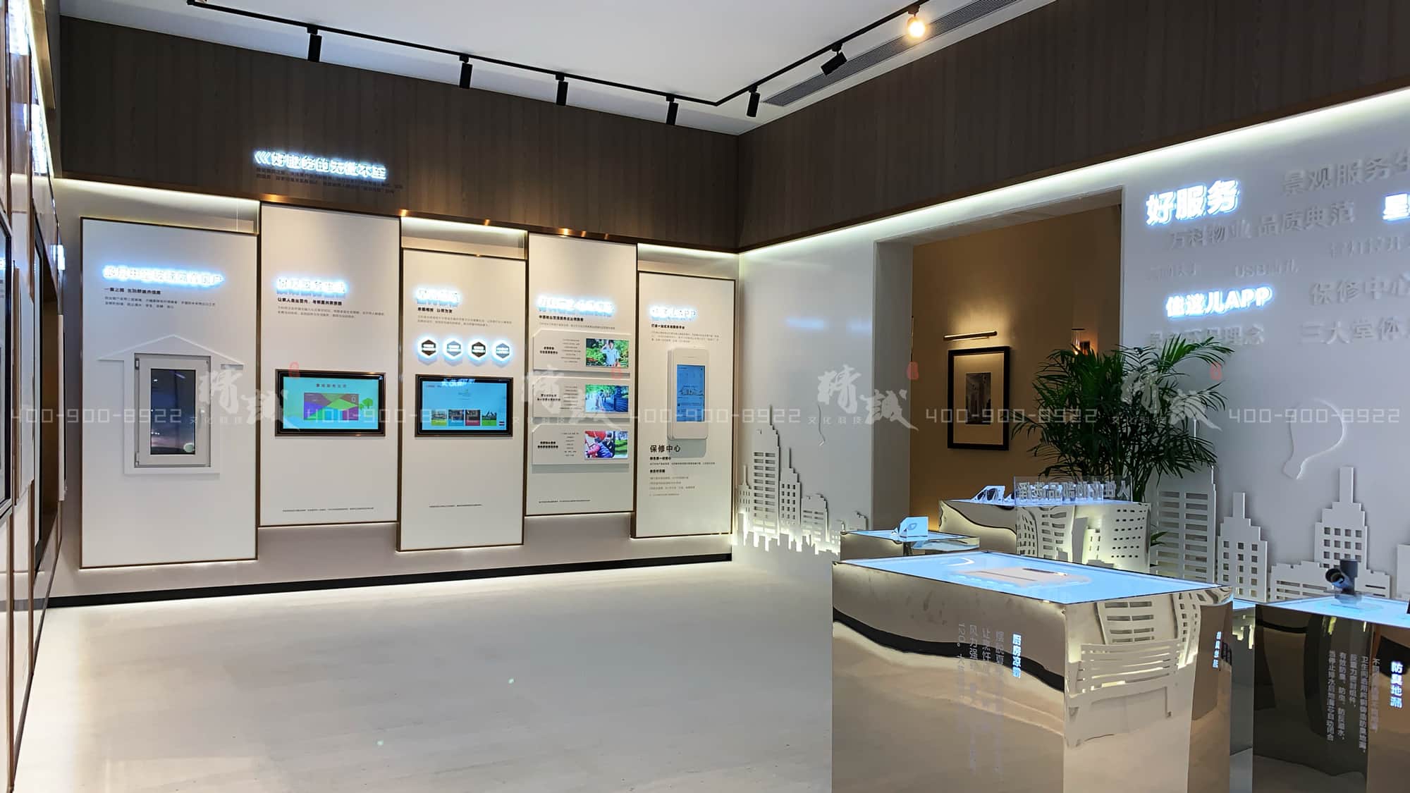 细微知著,墙面展板展现了万科为业主提供无微不至的好服务:有友好和谐的邻里活动,有全国百强的物业为业主提供便捷的高品质居住生活,更有业主专属客户端——“住这儿APP”为各位业主提供一站式的本地服务。