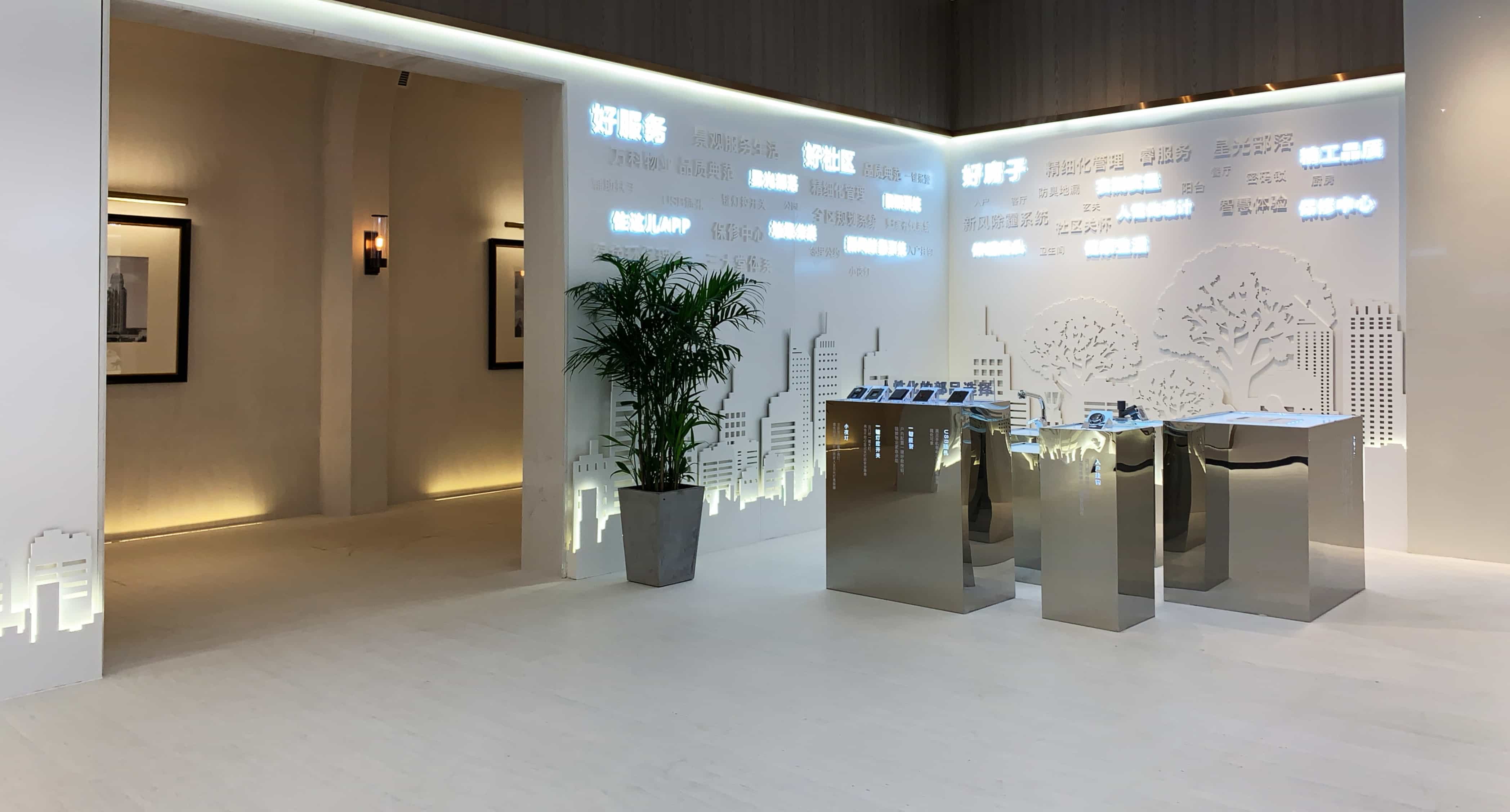 玻璃墙面上的每一个文字都在描述着万科在探索宜居住所路上的一个个“成果”。