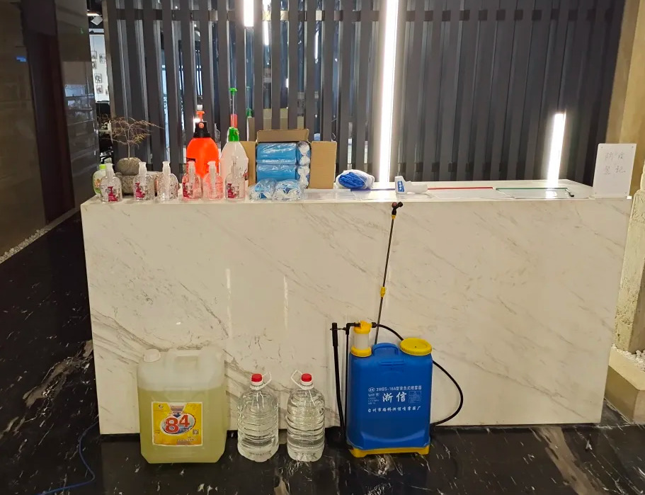 一大早,负责区域消毒工作的同事就提前完成了公共区域的消杀工作,努力做到全面消杀,不留死角。