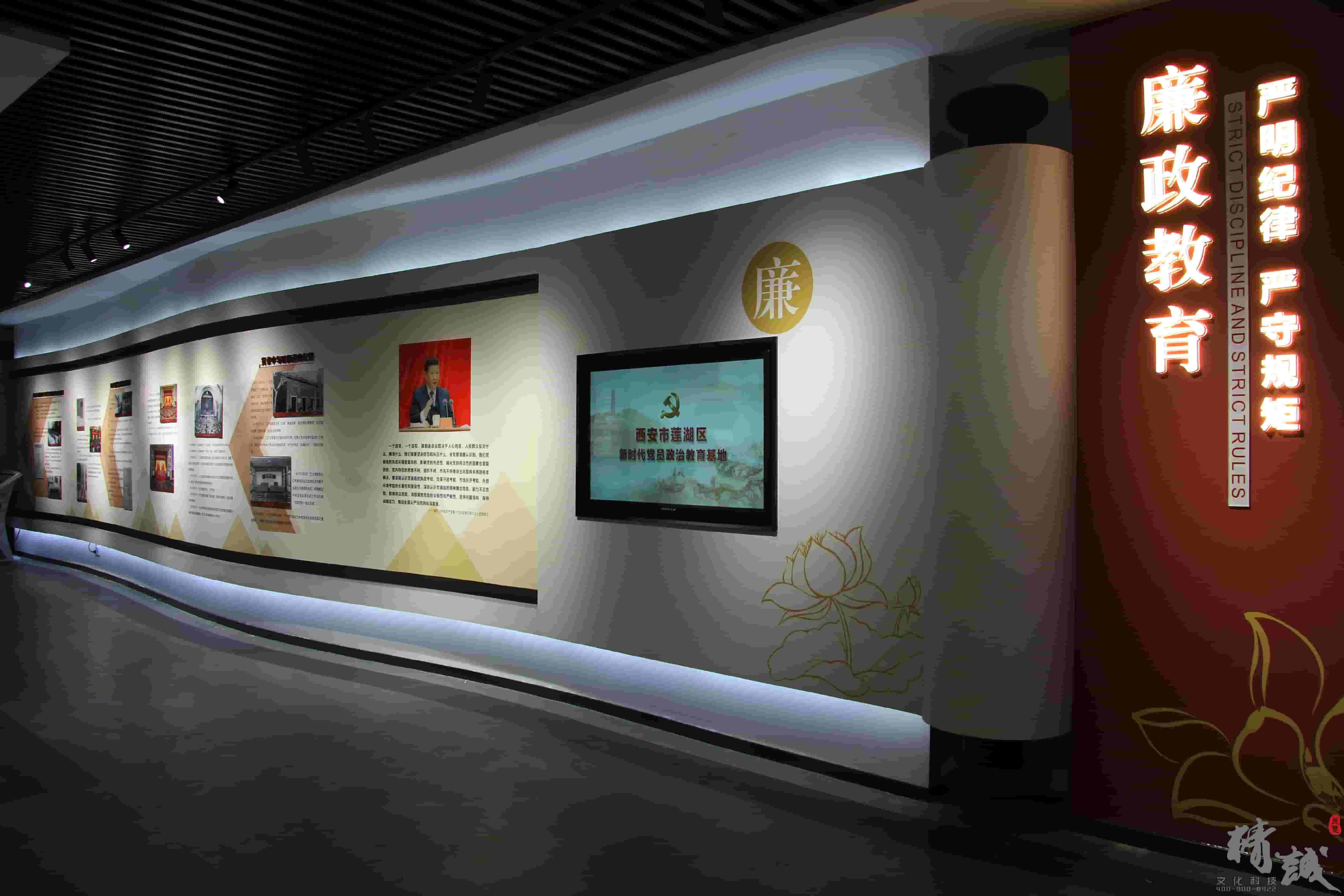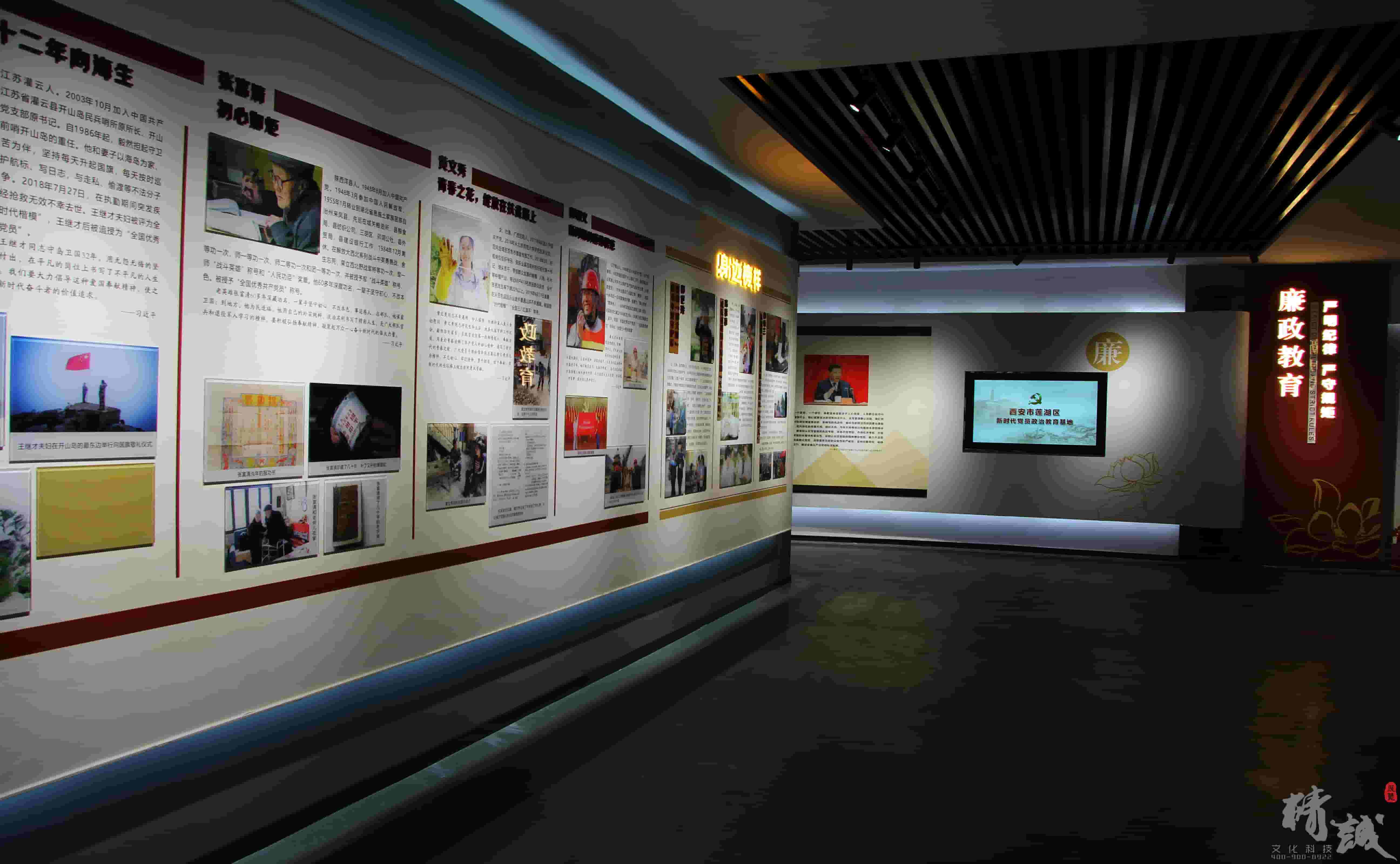 以画轴的展现形式展示习近平总书记全面从严治党重要论述,将廉政建设的重要性和意义娓娓道来,液晶显示屏播放廉政教育相关视频,注重从严治党的正面宣传,加强党员干部的廉政作风。