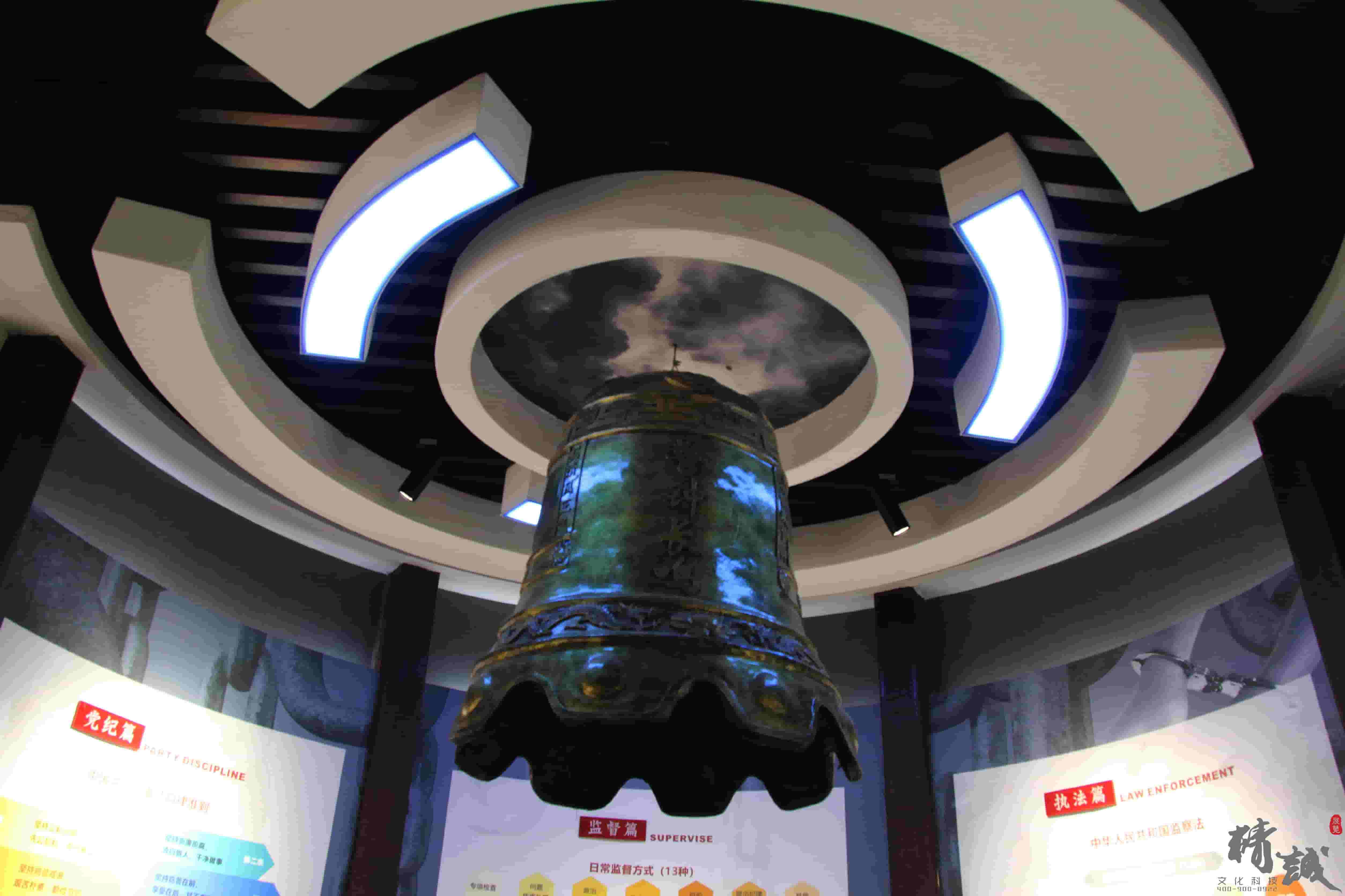 配合廉政警示教育,采用铁丝网造型墙和吊顶警钟设计,展示中央纪检监察机构历史沿革、莲湖纪检监察机构历史沿革以及十八大以来中省市区反面典型案例,从视觉感官层面引导广大党员干部自警自省,自重自律。