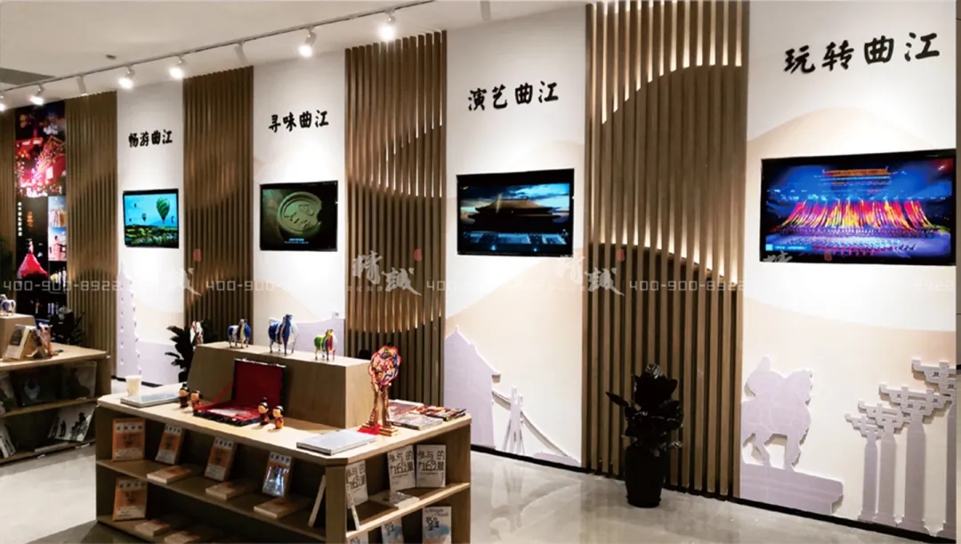 曲江游客服务中心把握地域特色和人文风俗,在设计风格和内容展示上将古都西安的文化软实力巧妙融合,在提升全域旅游新体验的同时,也展示出了曲江文旅产业发展的破竹之势。