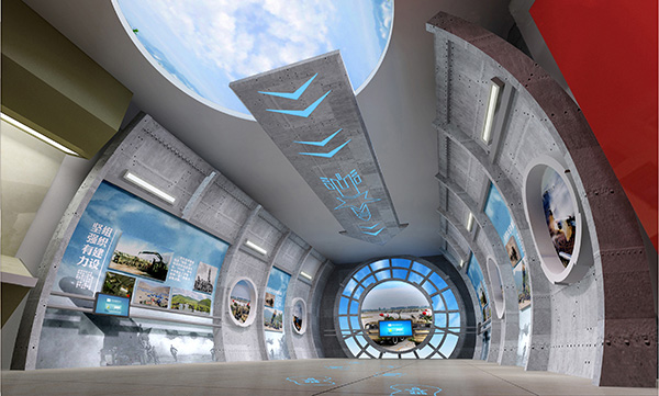 军史馆的设计遵循现代主义简约设计风格,严谨细腻,简约而不简单,丰富而不繁琐,渗透出军队的庄严,从形式上更新普遍 “画廊式”展厅的基本展陈风格。