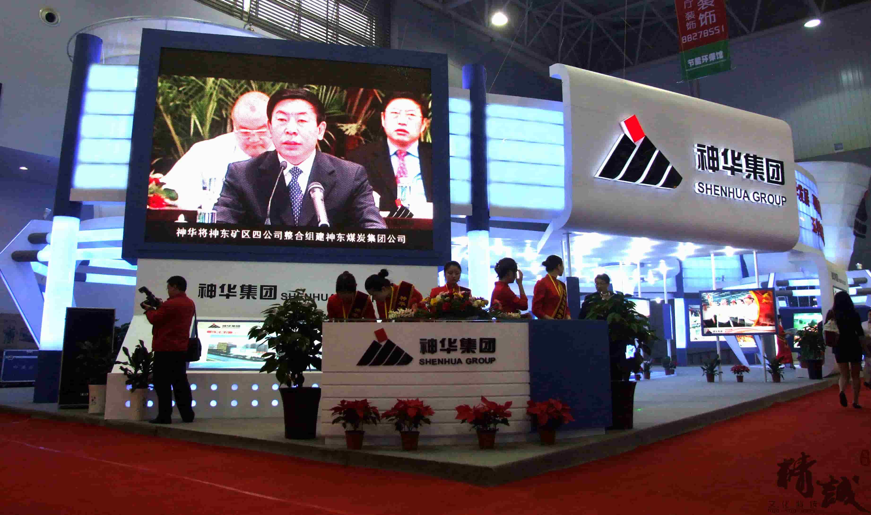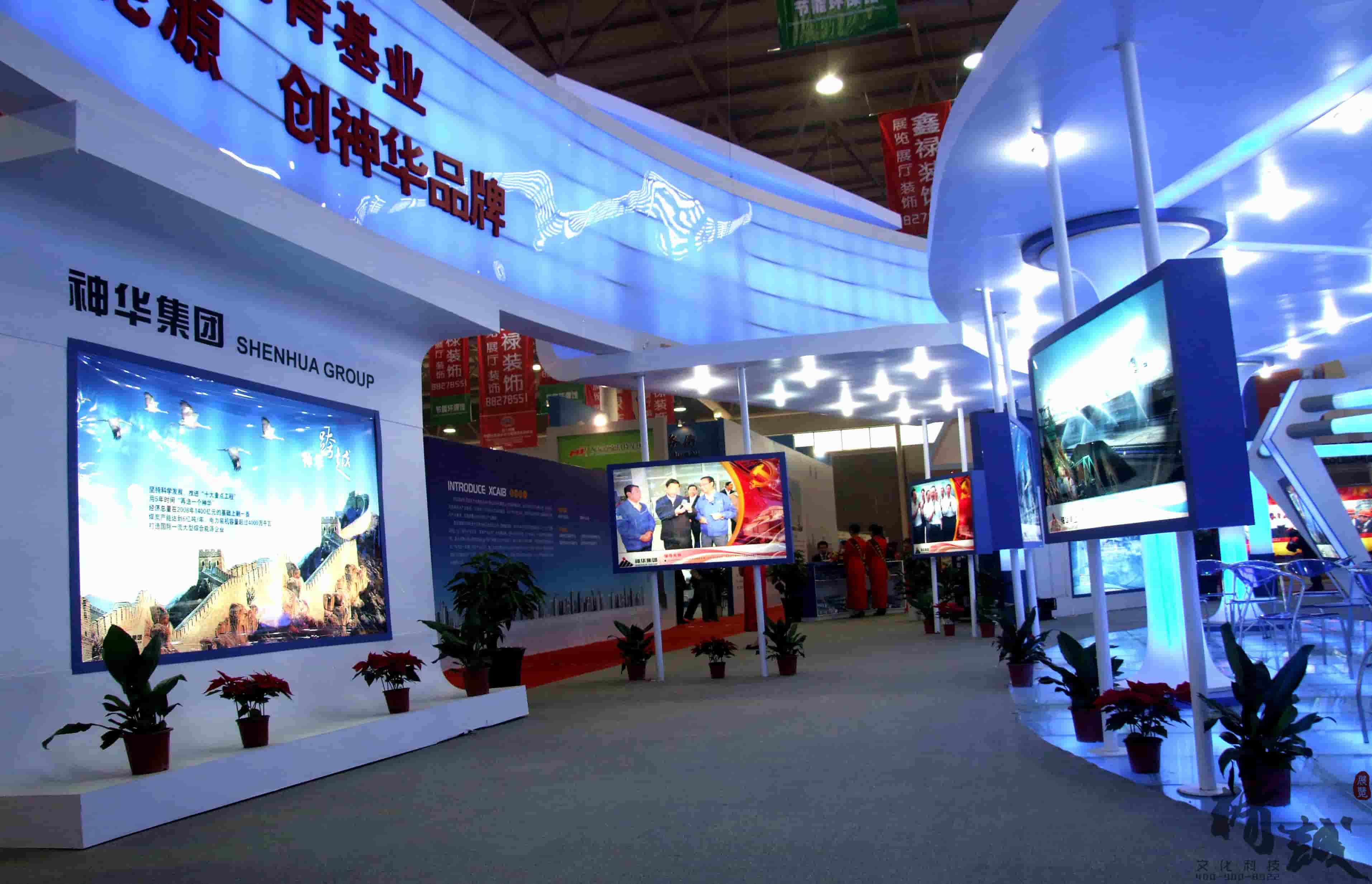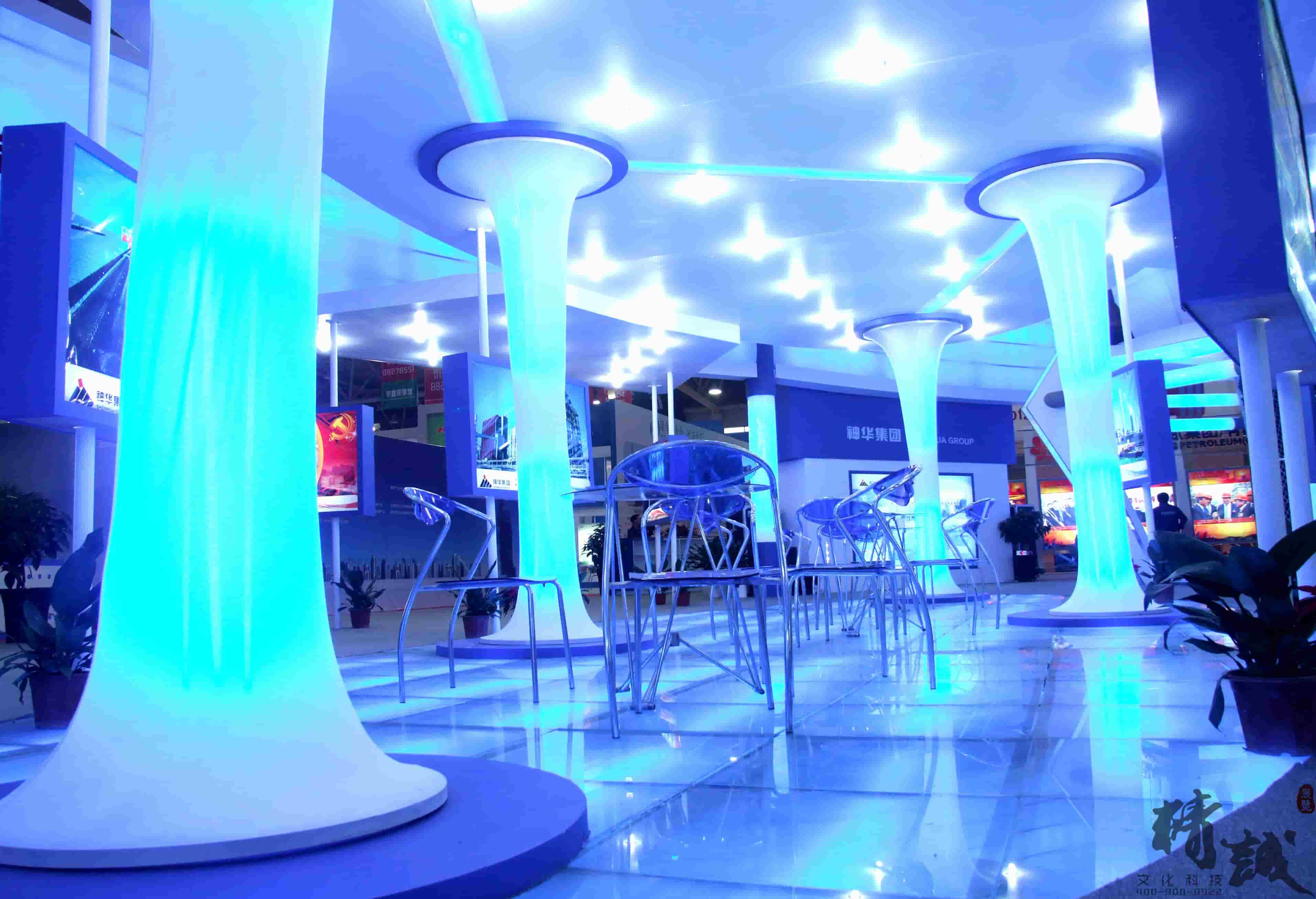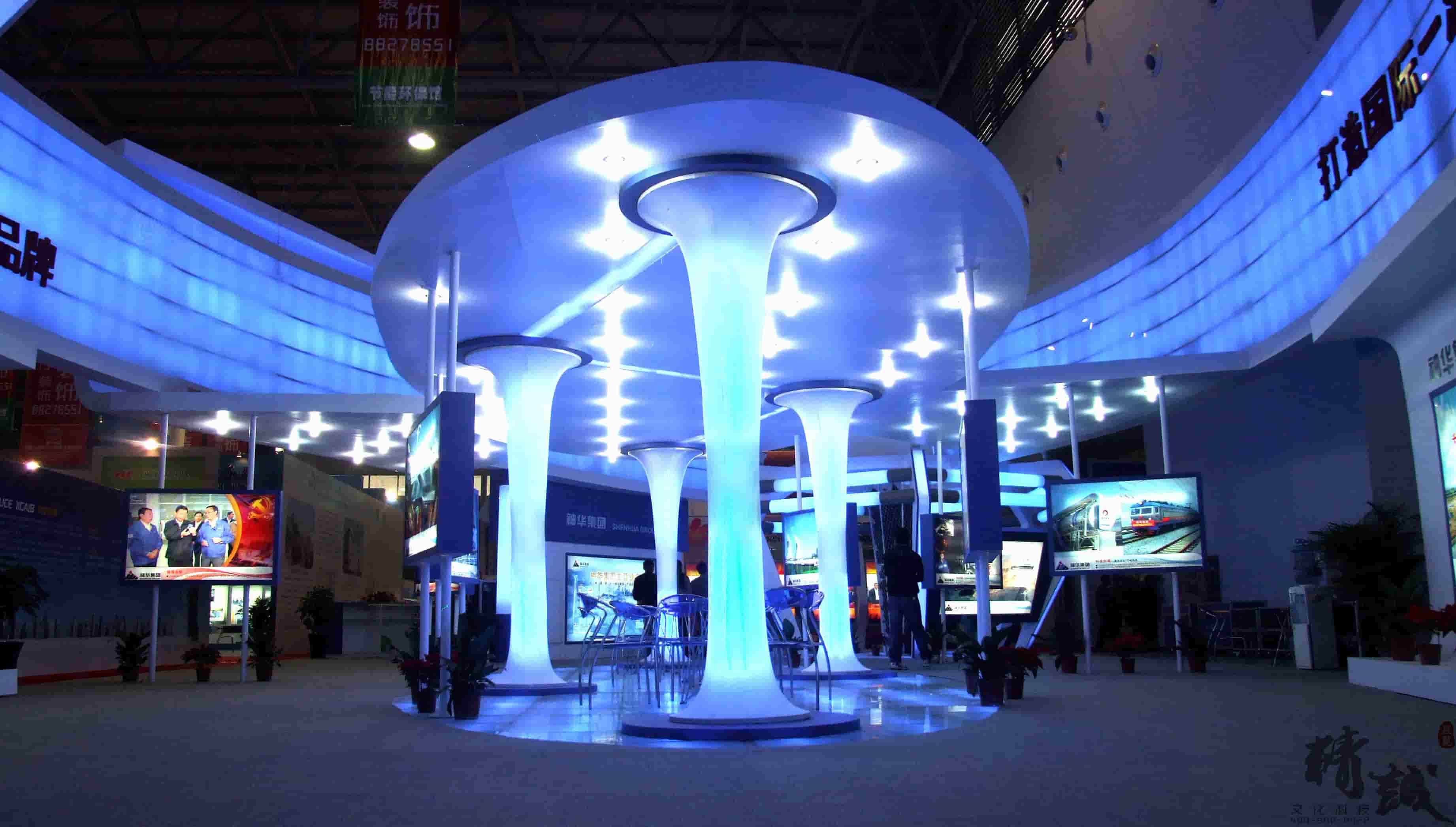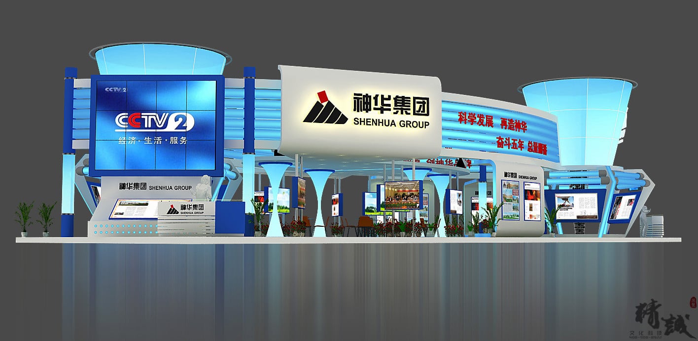 神华集团的展览展示设计在满足空间功能需求的前提下,运用现代、明快的设计语言,体现了建筑空间的层次感和和视觉的感染力。整体空间运用大面积的软膜饰面,结合灯带流线型的光感表现手法是展台视觉体现的一大亮点。展台中,“煤”的真实还原,贯穿整个展台起到了点睛之笔的重要。是企业的灵魂及价值体现。在整个立体空间,金属丝网的巧妙设计,“硕果累累”的煤石如同一个核心支柱,铿锵有力,“直上云霄”。