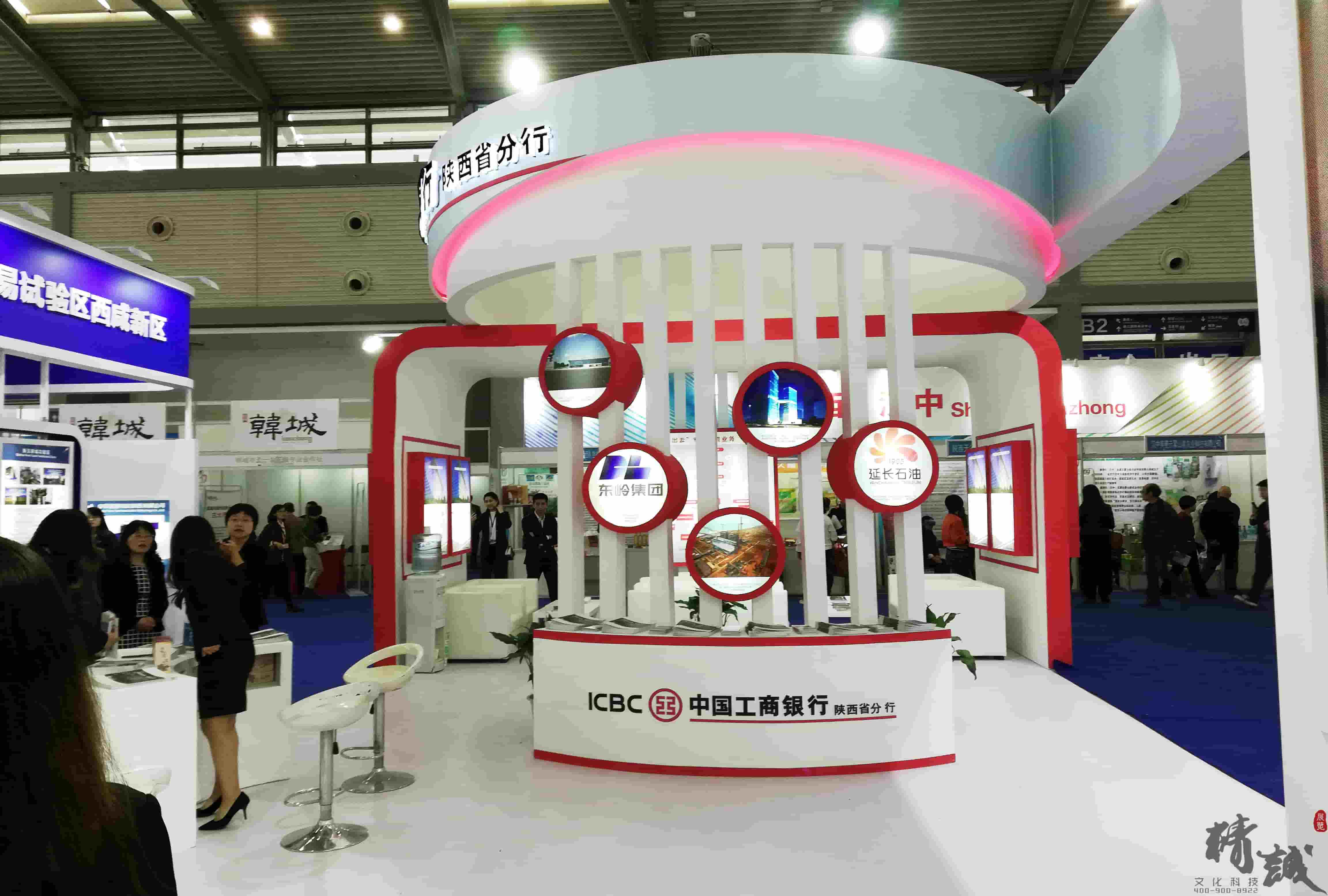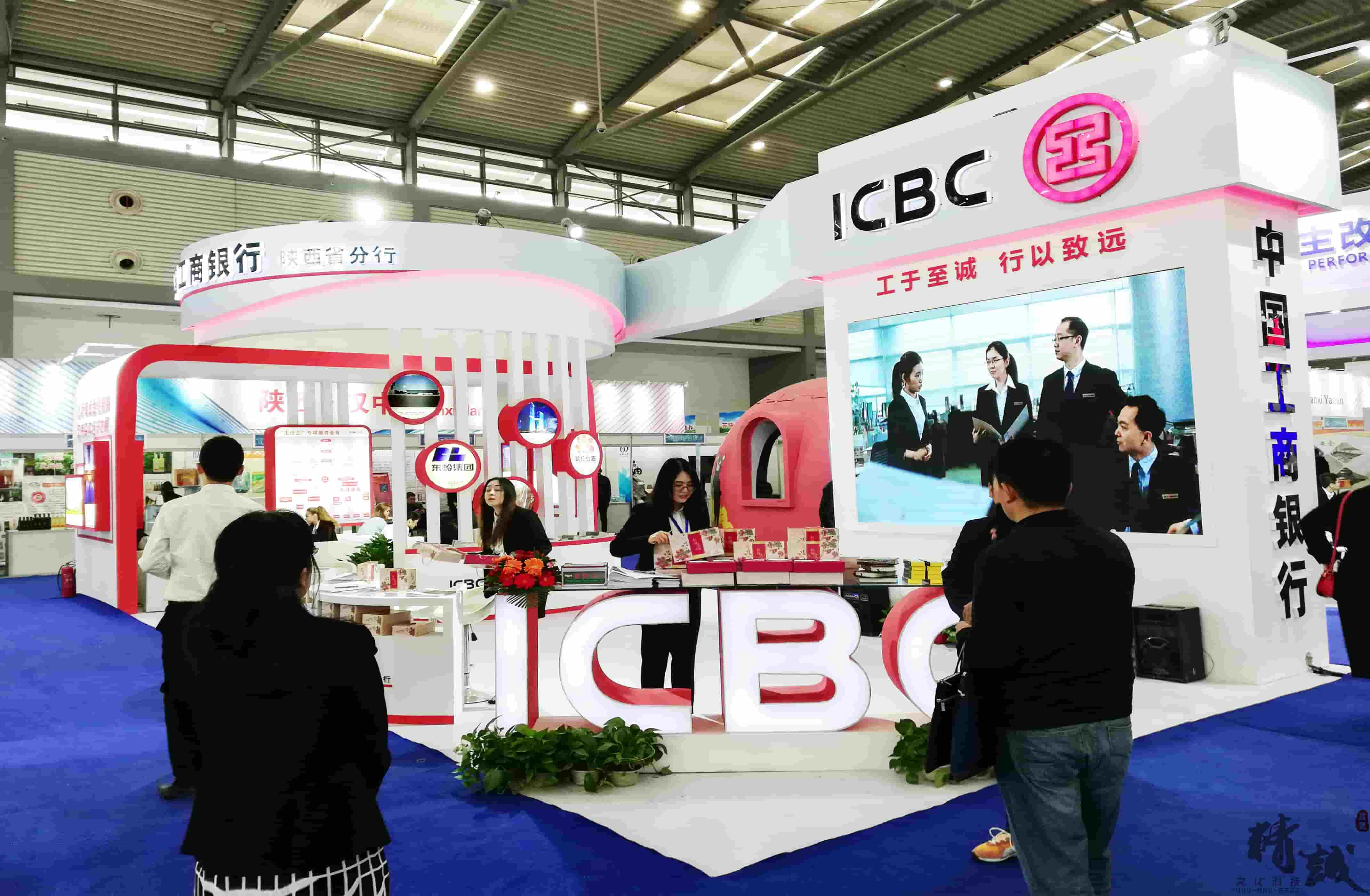 中国工商银行展位采用开敞式的布局,能够使参观者在其中自由参观;色彩上以白色为主,红色作为点缀,运用合理的灯光进行搭配,营造出干净、简约的展陈氛围。展区内部采用声、光、电相结合的现代展示手法,打造功能合理、展陈明确的展位形象。