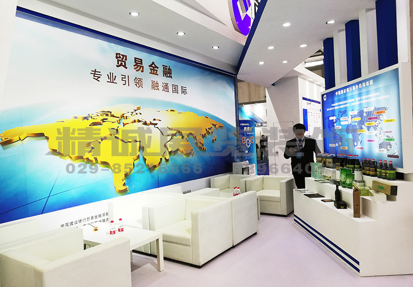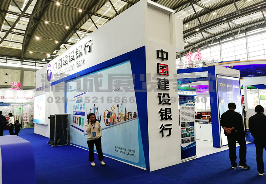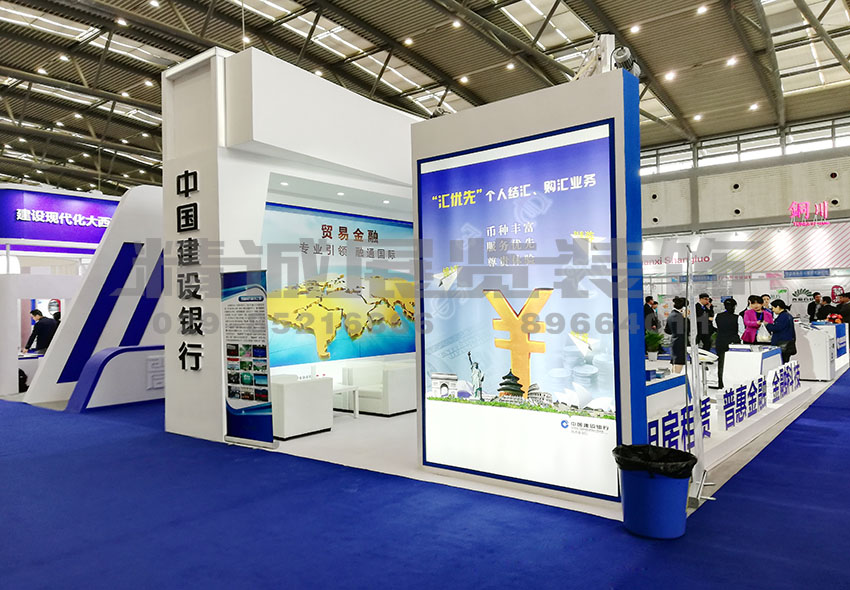 “中国建设银行 建设美好生活”作为展位的主题,从金通91桃色APP在线观看入囗到悦享生活,以及优智服务的板块展示,体现中国建设银行成立以来的成就。运用蓝色作为点缀色,代表着严格、规范、认真的企业理念;采用logo标志,象征饱满、亲和、通融。