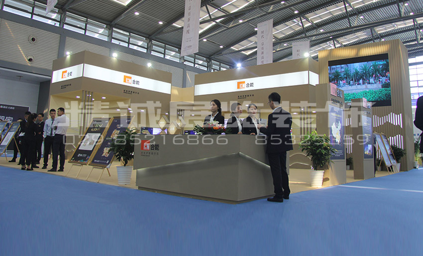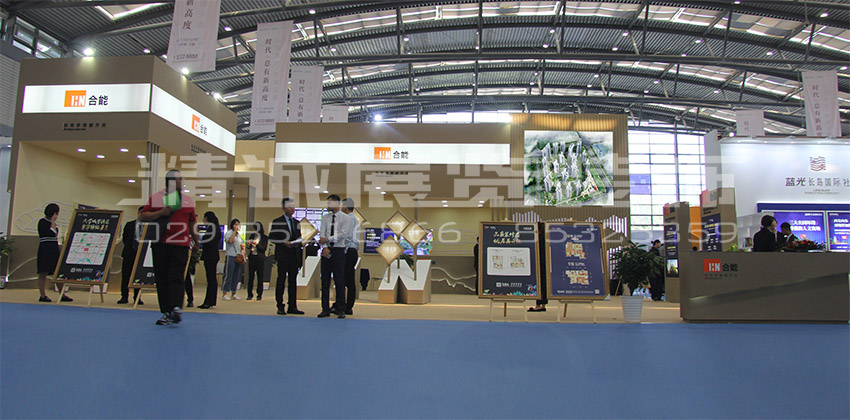 合能地产展位以象征现代、91桃色APP在线观看入囗、创新的风格设计,通过设置LED大屏、灯箱展板、区域规划图等表现手段,并以建筑造型为展位外形,体现了坚持品质匠心的精神。