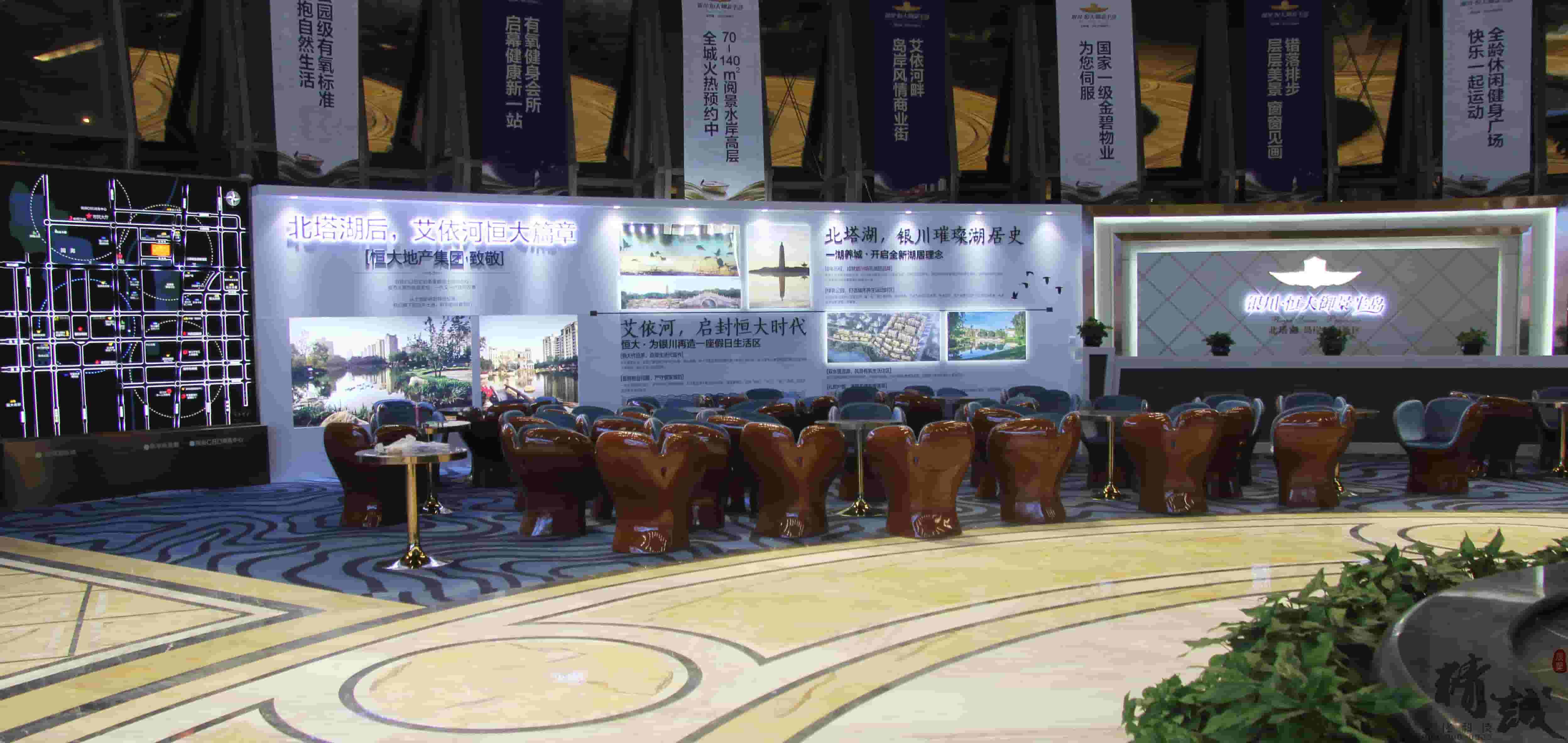 以下的几组图是我公司(陕西91桃色APP下载免费版展览装饰有限公司)为恒大御景半岛展示中心设计的装饰装修图,请往下欣赏: