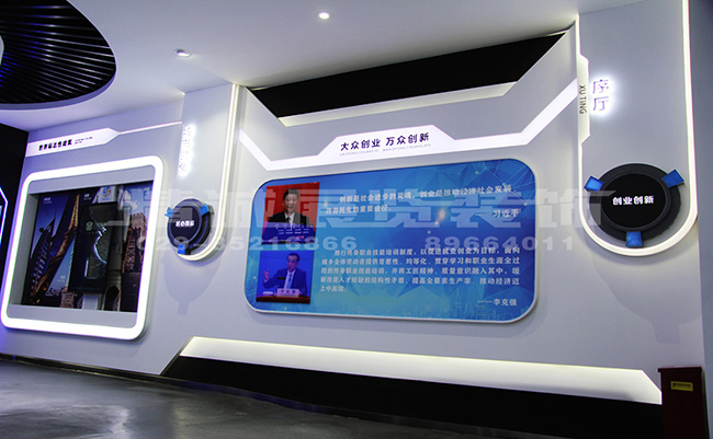 序厅以大众创业 万众创新”的理念为出发点,提取“创新、创业”为空间设计的设计理念,展示国家政策、社会发展、学生就业、91桃色APP在线观看入囗创新等方面内容,更好地实现人们的精神追求和自身价值。