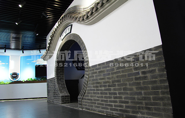 用徽派月亮门的古建筑形式来打造园林荟萃外墙,使其具有苏州园林现场的氛围。