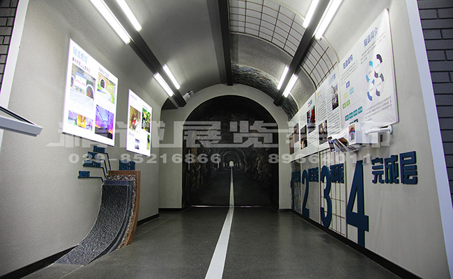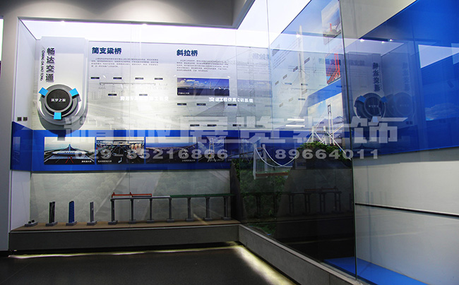 运用图文展墙以及实体模型,展示道路桥梁、隧道方面所取得的成就。